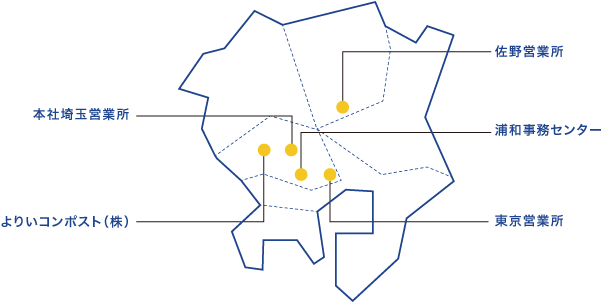 タカワキは、北本・川口・佐野の3ヵ所に設置した営業所を中心に、関東一円をその営業エリアとしています。